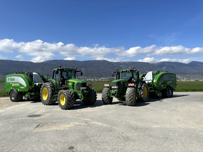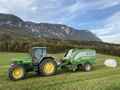 Bei der Silage Ernte sind wir mit zwei Rundballenkombinationen der Marke Mc Hale Fusion 3 für Sie im Einsatz. Beide Pressen sind mit Mantelfolienbindung ausgerüstet.