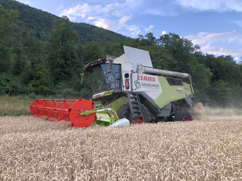 Mit der Einführung des Claas Trion 530 Montana in unser Maschinenportfolio setzen wir auf modernste Dreschtechnologie, um eine breite Palette landwirtschaftlicher Erntearbeiten abzudecken. Dieser fortschrittliche Mähdrescher verfügt über ein 5-Schüttler-System mit dem effizienten APS-Dreschsystem und eine Balkenbreite von 6.2 Metern, was ihn für grosse Erntemengen ideal macht. Zusätzlich ausgestattet mit einem Strohhäcksler und einem Strohverteiler. Der Claas Trion 530 ist mit dem Montana Hangausgleich ausgestattet.